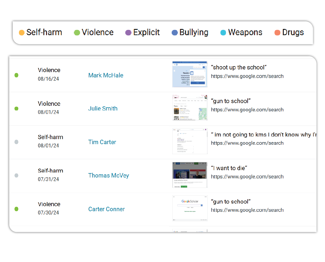 Safety is at the heart of our mission. Our solutions are built to help schools keep students safe online, and to proactively identify students in crisis before tragedy occurs.